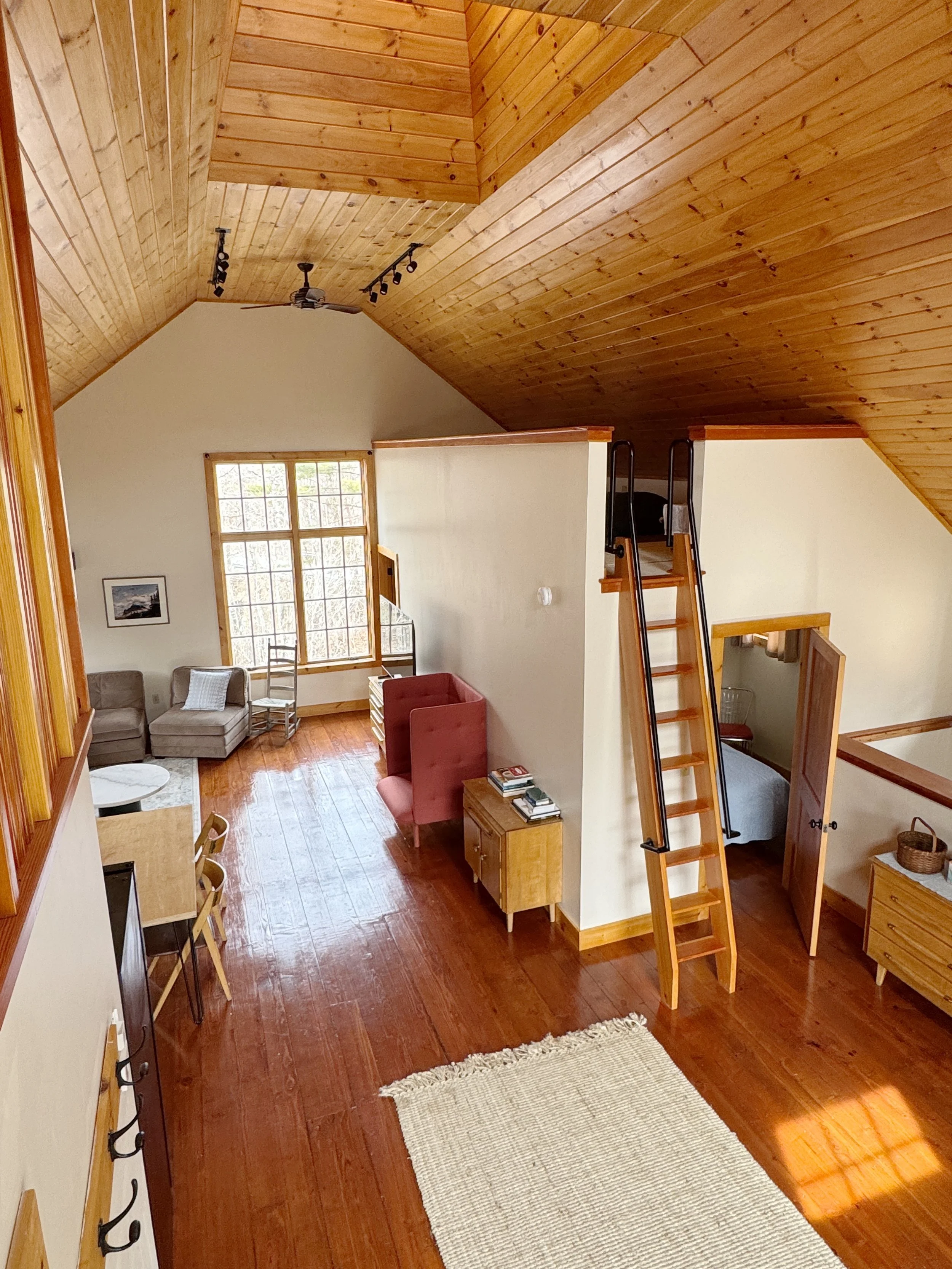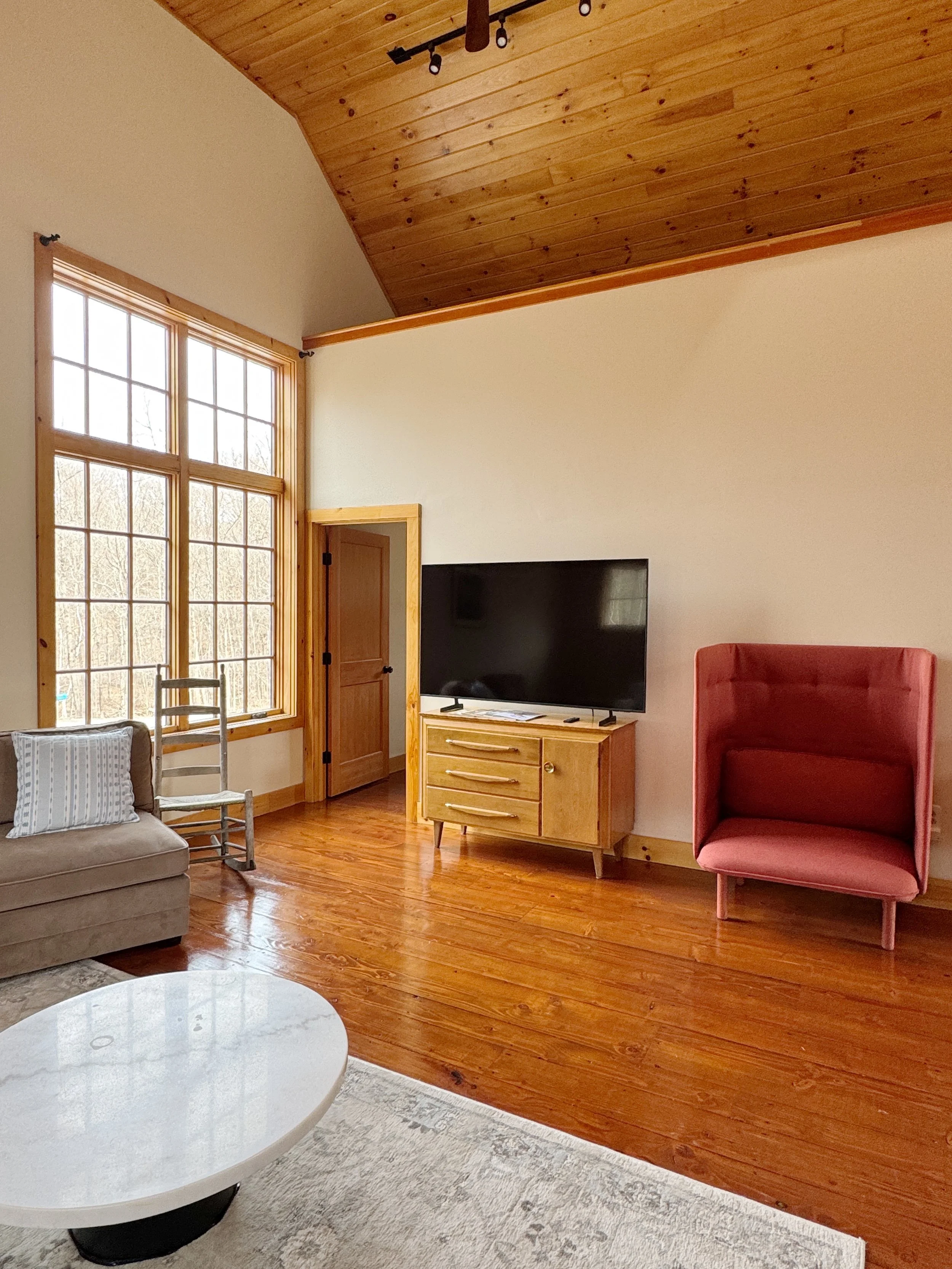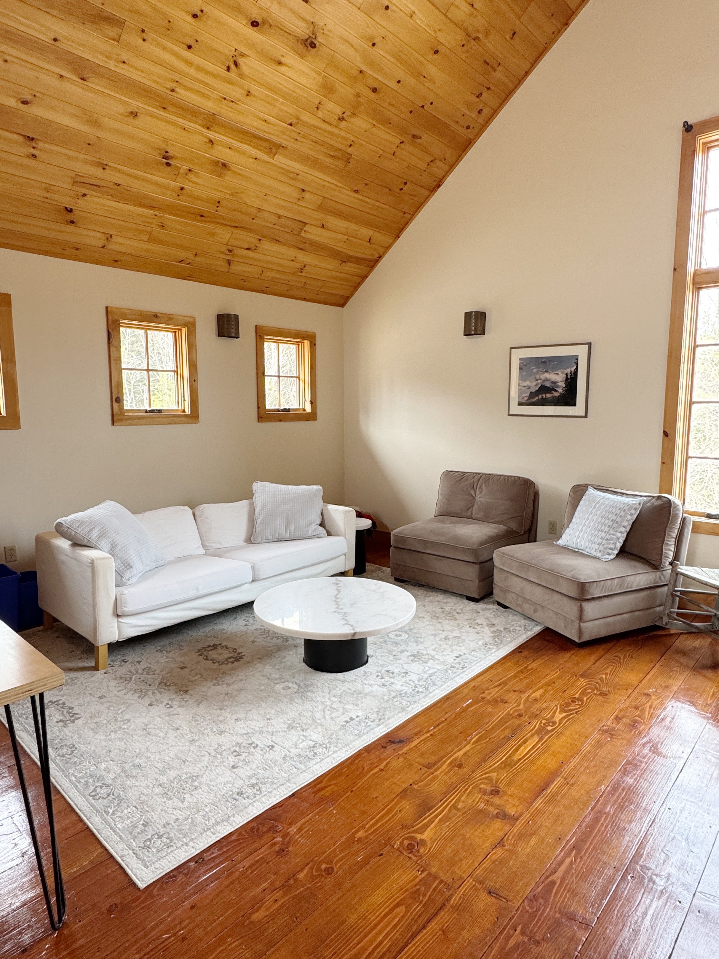 The property features two distinct dwellings: a warm and inviting main house and a beautifully built modern barn. The main house offers cozy common spaces, a full kitchen, and comfortable bedrooms—perfect for gathering together—while the barn provides its own kitchen, bathroom, and sleeping areas, giving guests a private and self-contained space just steps away.